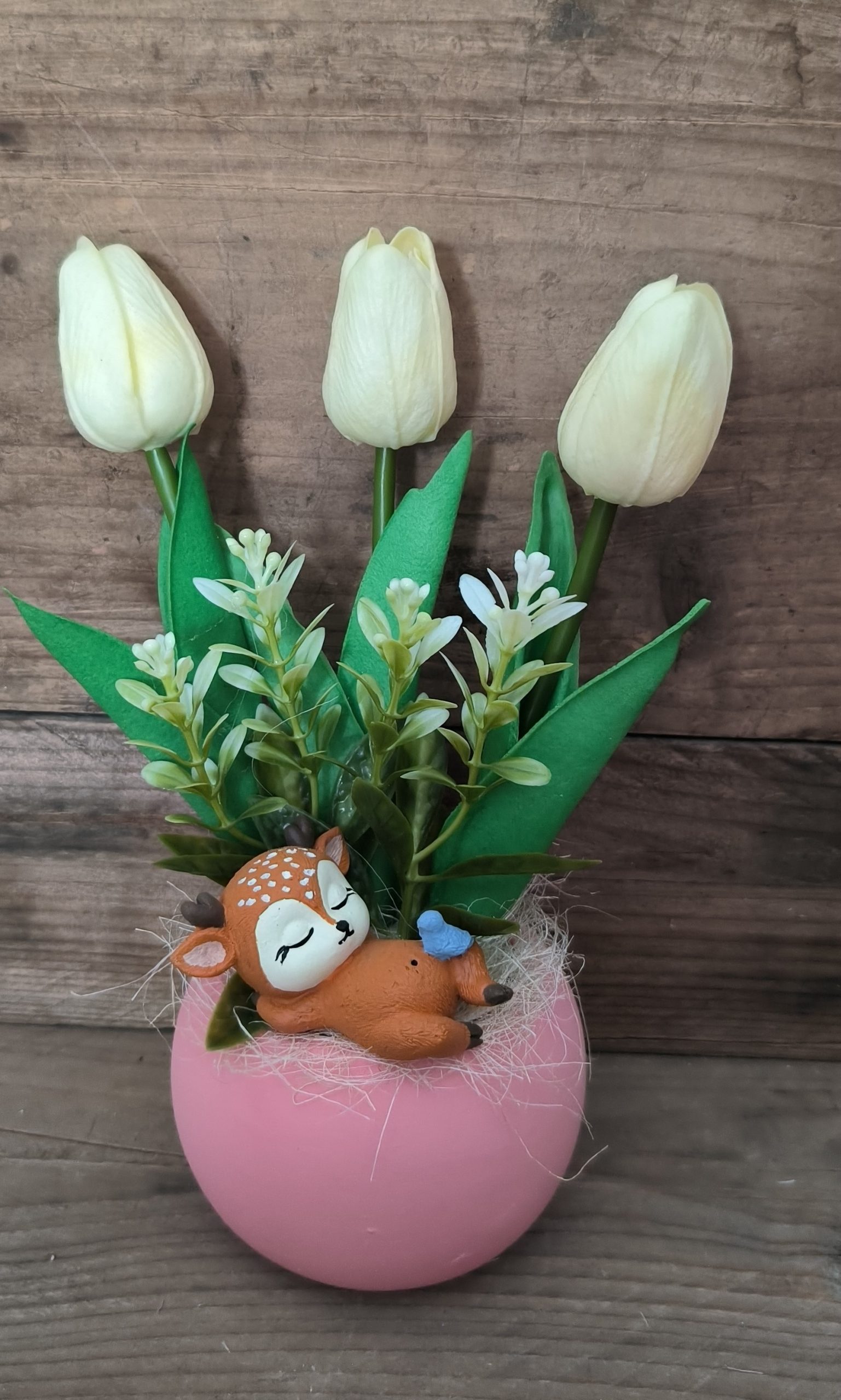 Alvó őzikés tulipános dísz – fehér tulipánnal