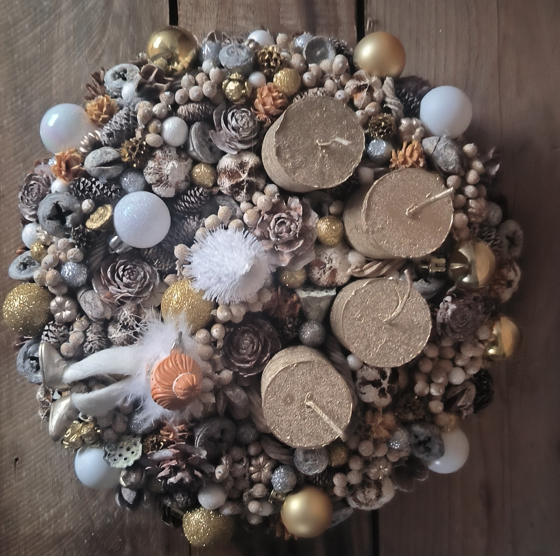 25 cm-es szalma alapra készült adventi dekoráció