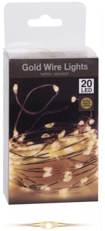 Arany drótkábeles fényfüzér 20 LED-es mennyiség
