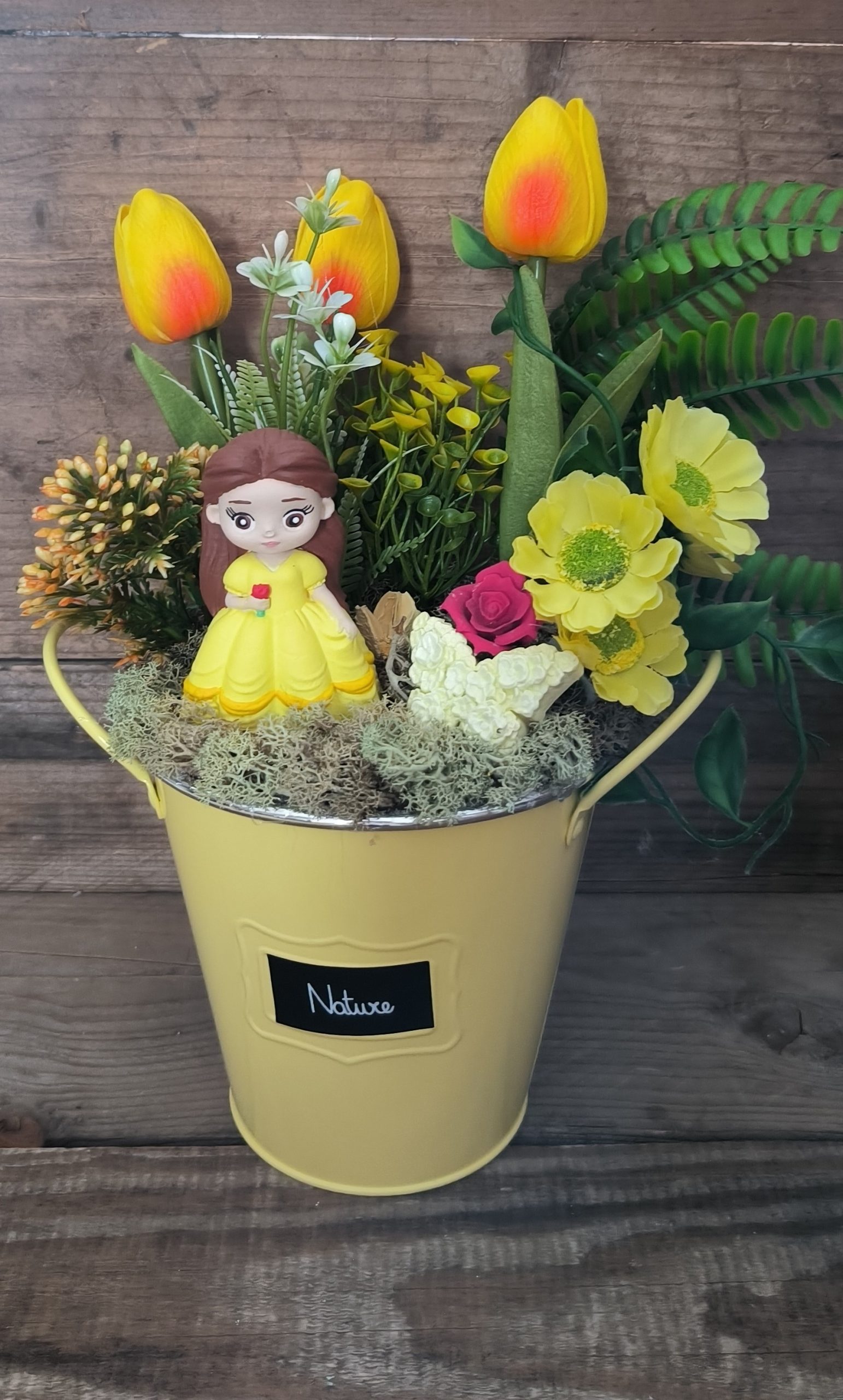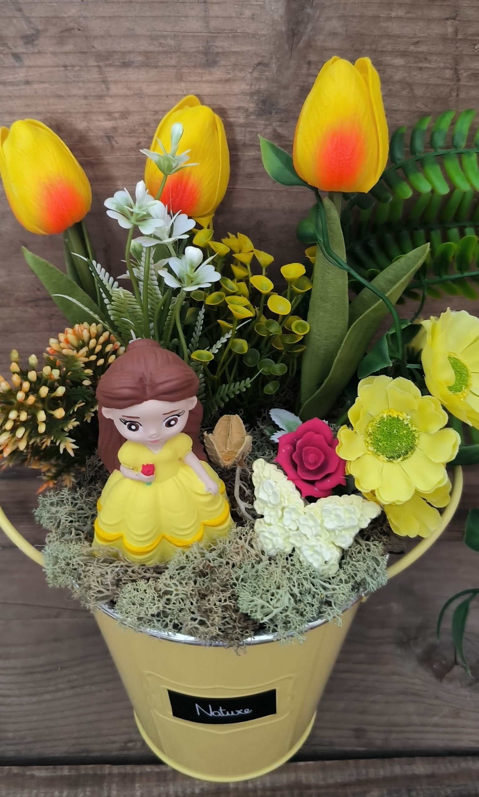 🌼✨ Disney – Belle tavaszi dekoráció sárga kaspóban ✨🌼