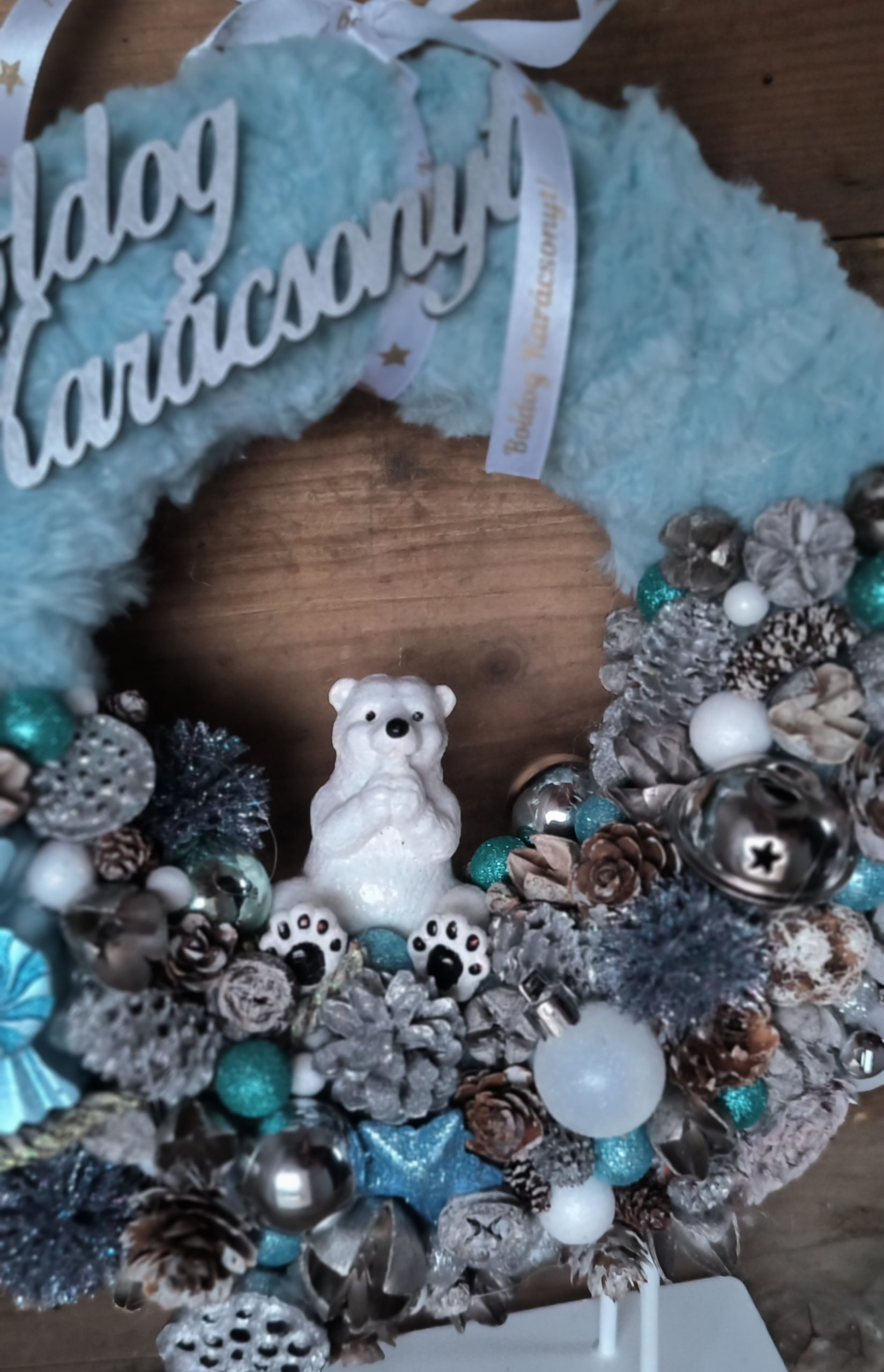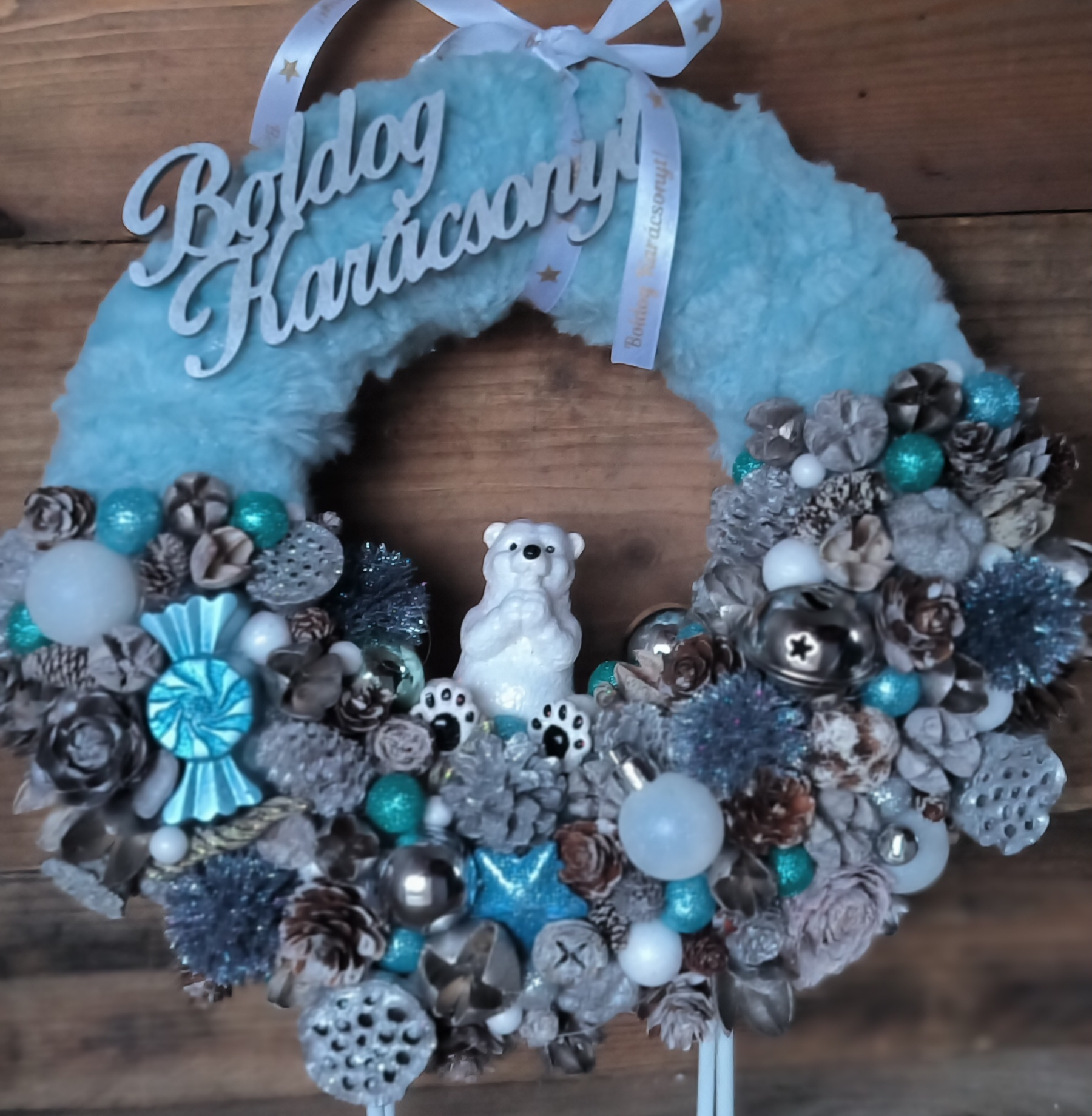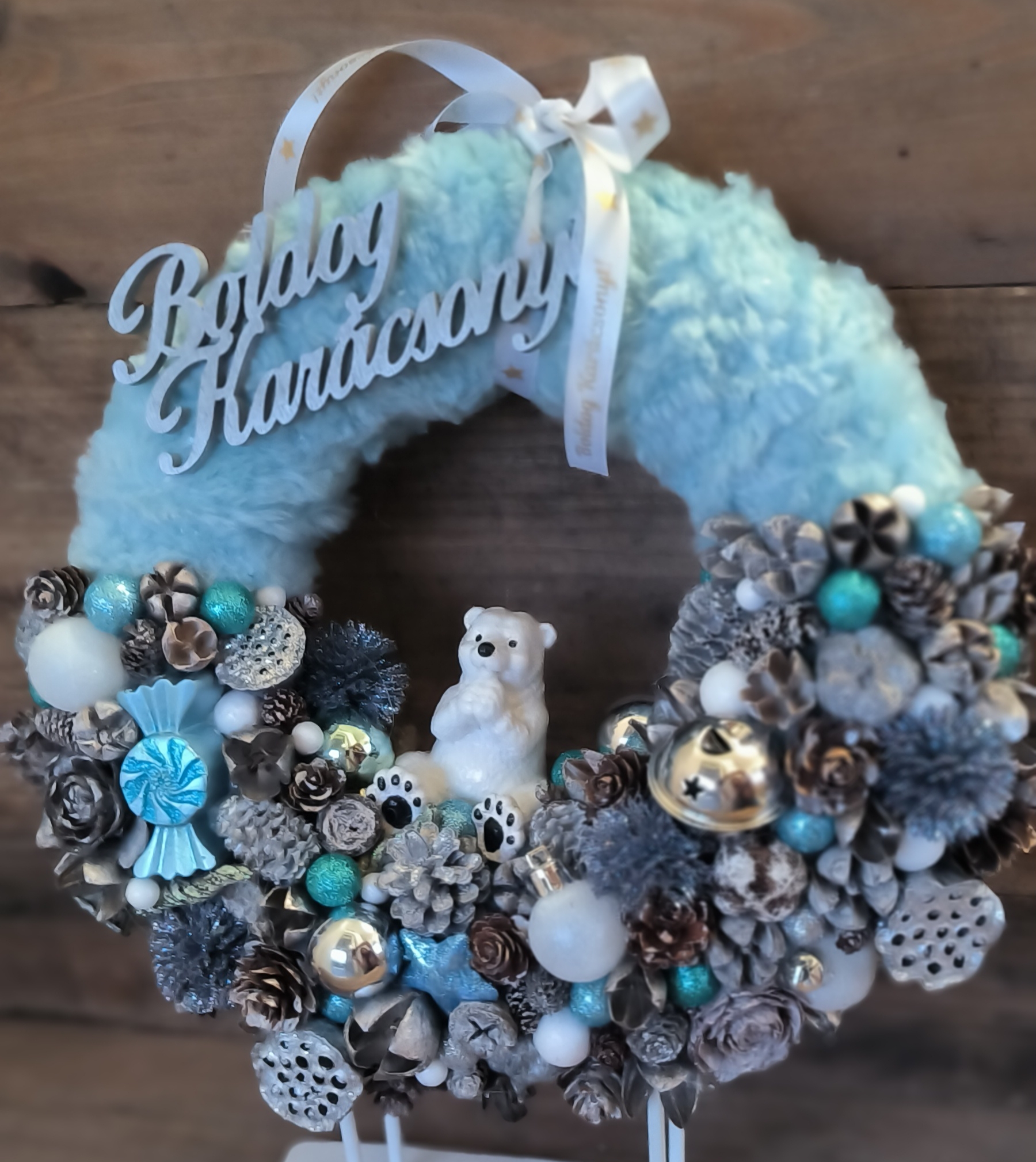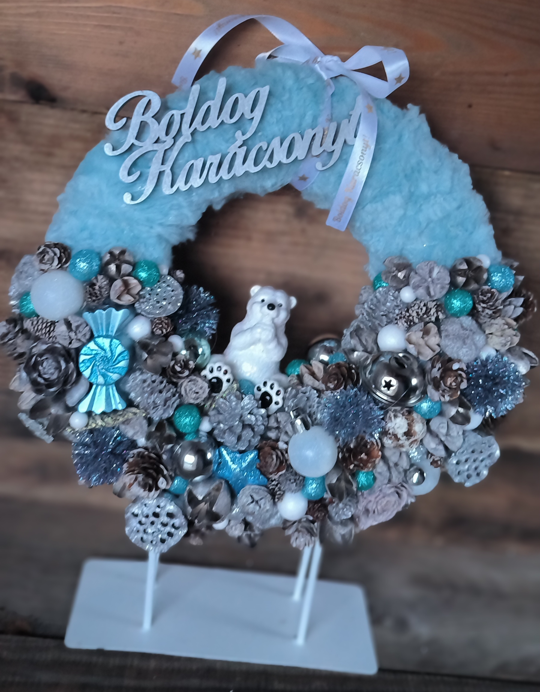 25 cm-es szőrmével bevont szalma alapra készült kopogtató