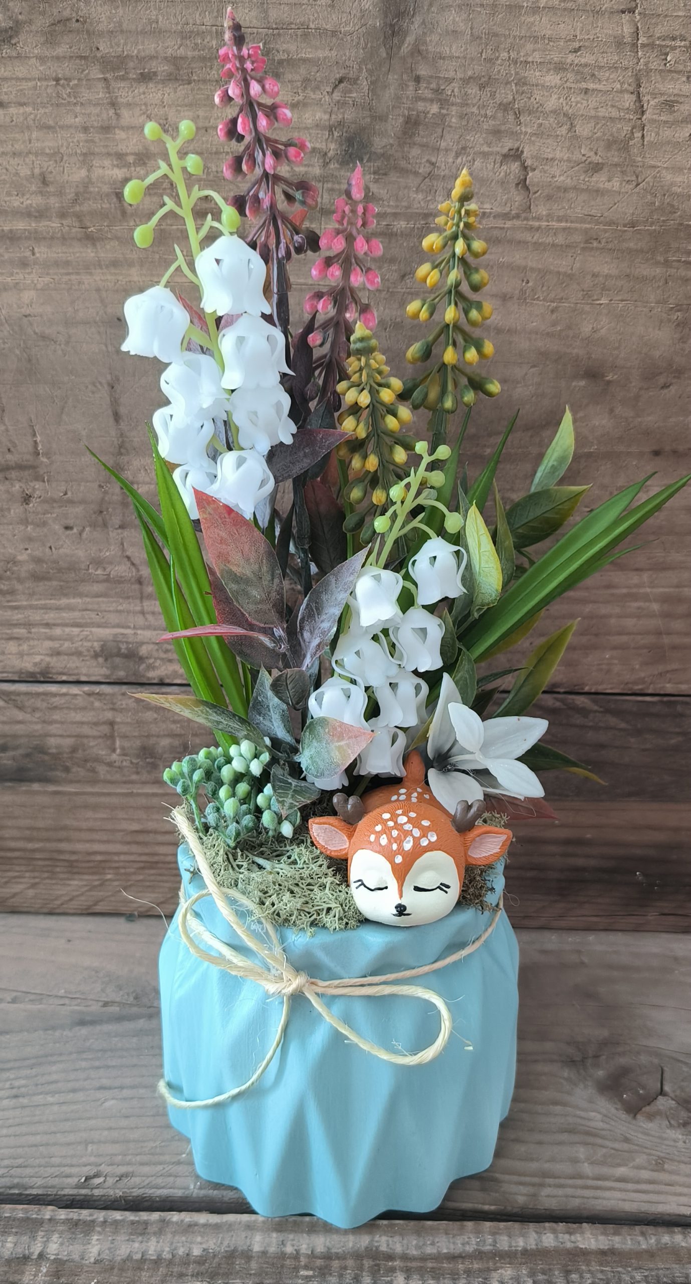 Tavaszváró őzikés dísz, county kék kaspóban